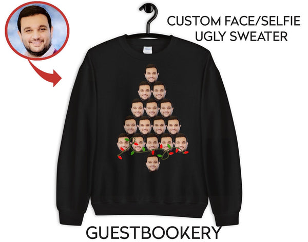 CUSTOM Face Ugly Christmas Sweater - Ugly Christmas Sweater - Funny Christmas Sweatshirt - Christmas Tree Sweater - Funny Christmas Gift